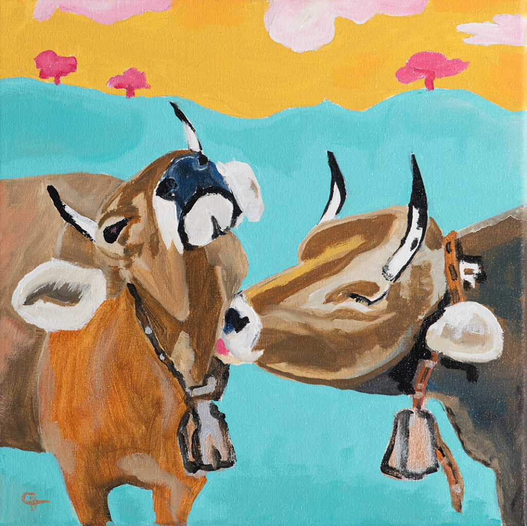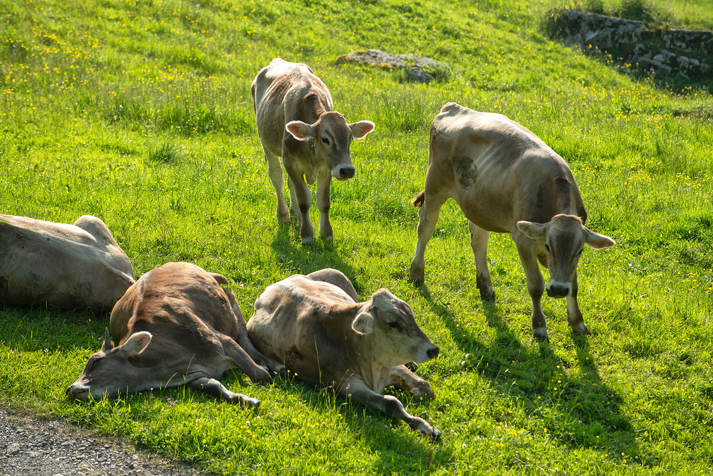 Wir saßen beide im Hof umringt von Blumen und tranken Tee. Regula sagte: „Denkst du, was ich denke?“ Ich sagte: „Ja, weit und breit keine Kuhglocke.“